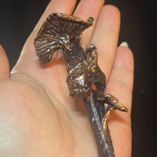 The crow’s beak, known for its association with intelligence and adaptability, serves as a powerful symbol of transformation and insight. The delicate funnel chanterelles, with their vibrant hues, add a touch of organic beauty, celebrating the bounty of the forest. Together, they create a harmonious blend of elements that invite contemplation and appreciation for the natural world.
