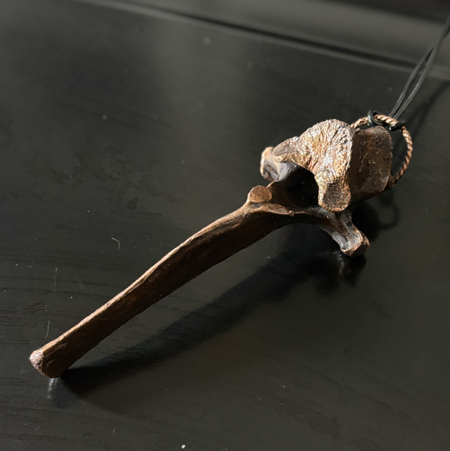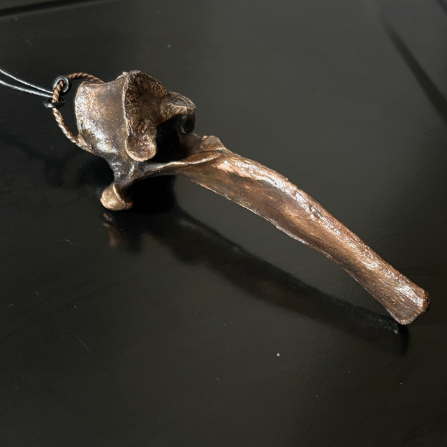 Discover the essence of nature with “Forest Majesty,” an exquisite piece of jewelry crafted from a moose or wild boar vertebra, elegantly coated in copper.