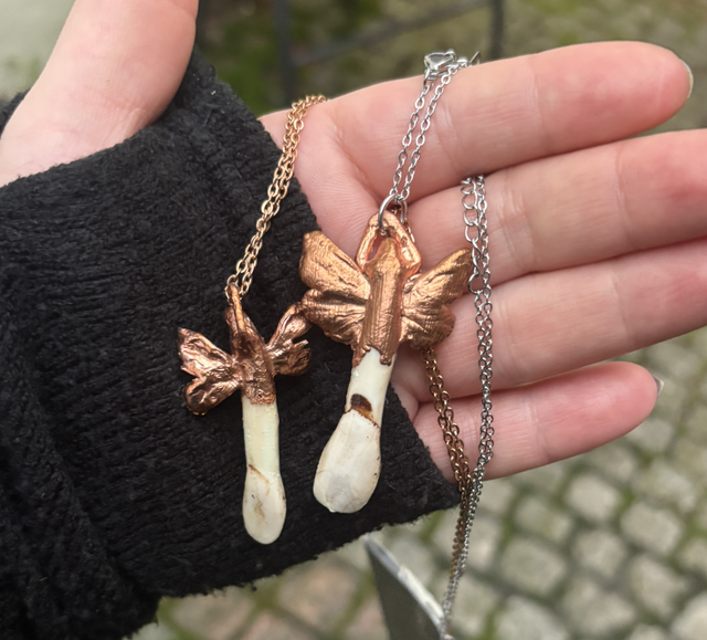 The piece captures a haunting balance between beauty and decay — where the fragility of wings meets the primal strength of bone. A perfect talisman for those drawn to dark fairy aesthetics, witchcraft, and nature’s wild magic.